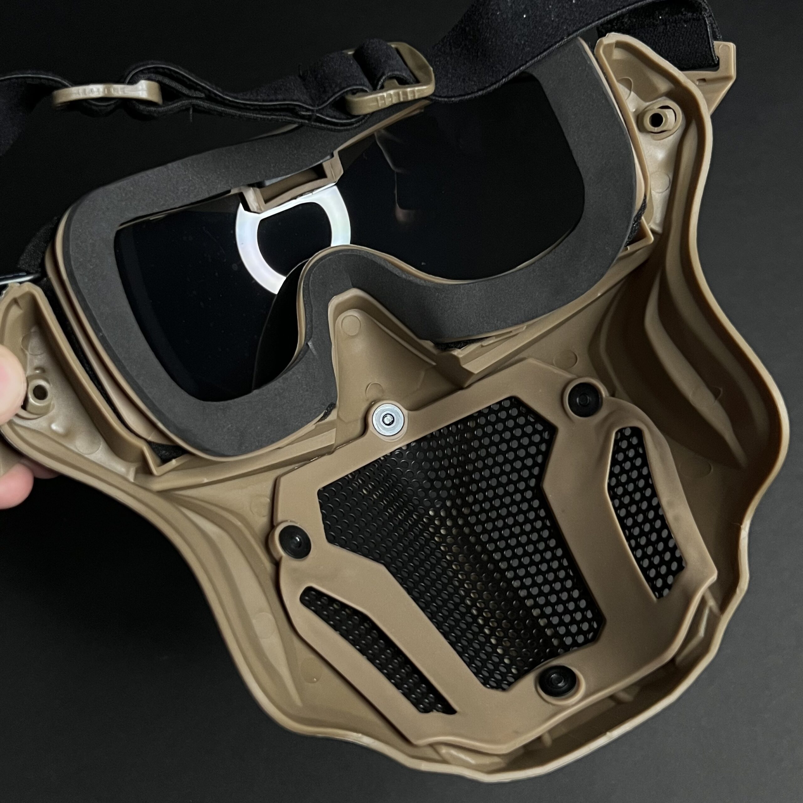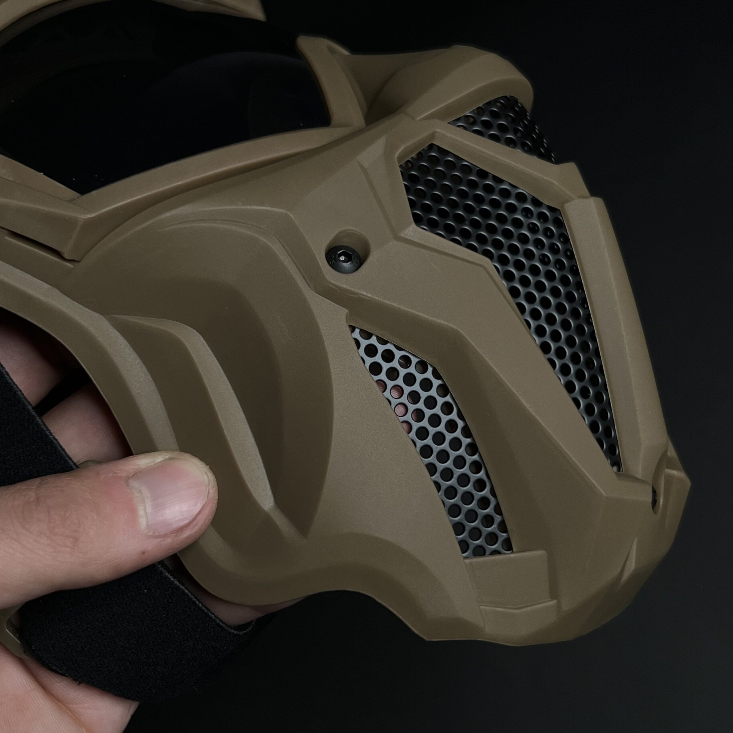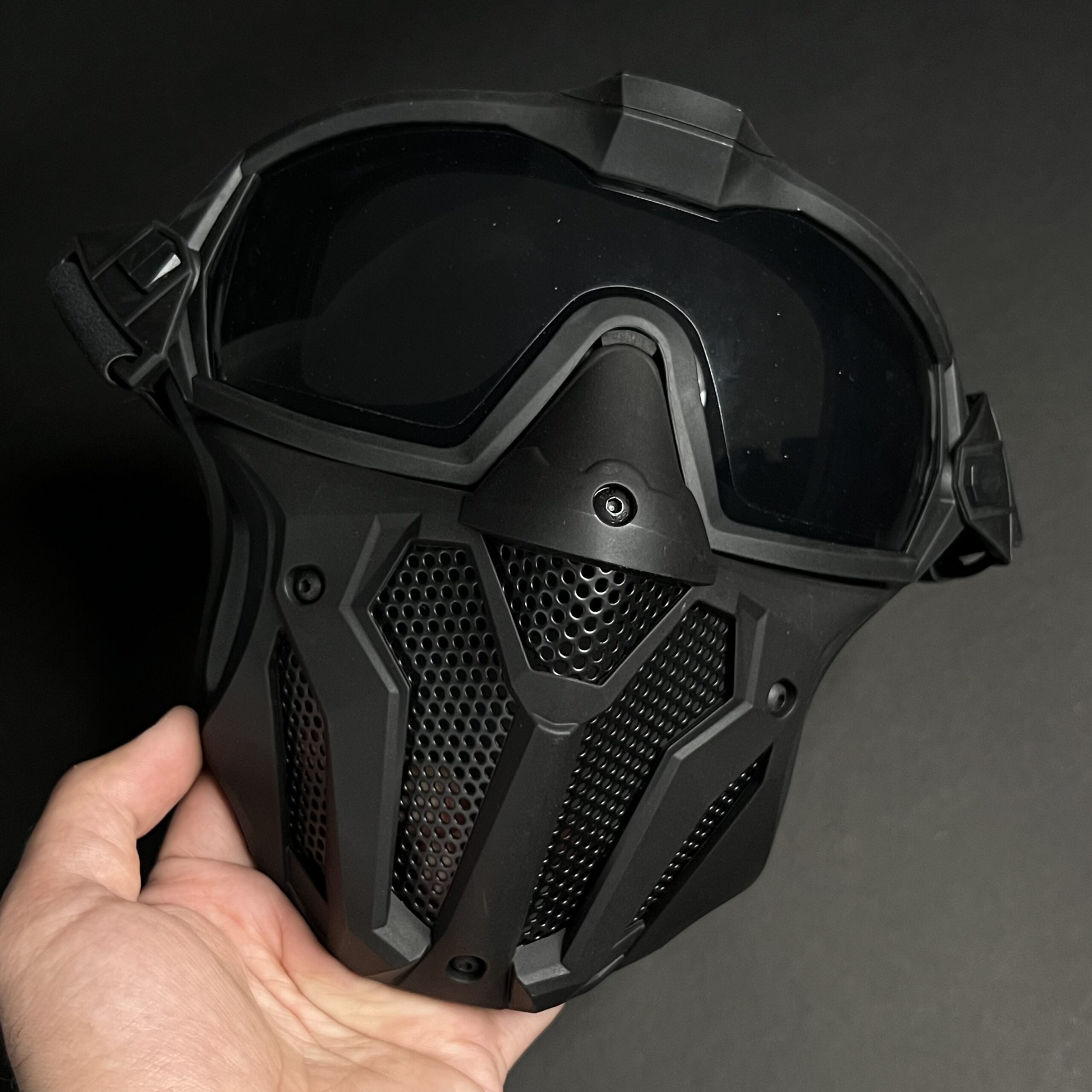 قناع بريميوم كوالتي ضد الصدمات ، تاكتيكال ، مصنوع من اجود انواع البلاستك الحراري TPU/سميك مع مشبك كاربون ستيل للحماية مع بادات للعين مريحة باللبس و تنطي حماية كذلك