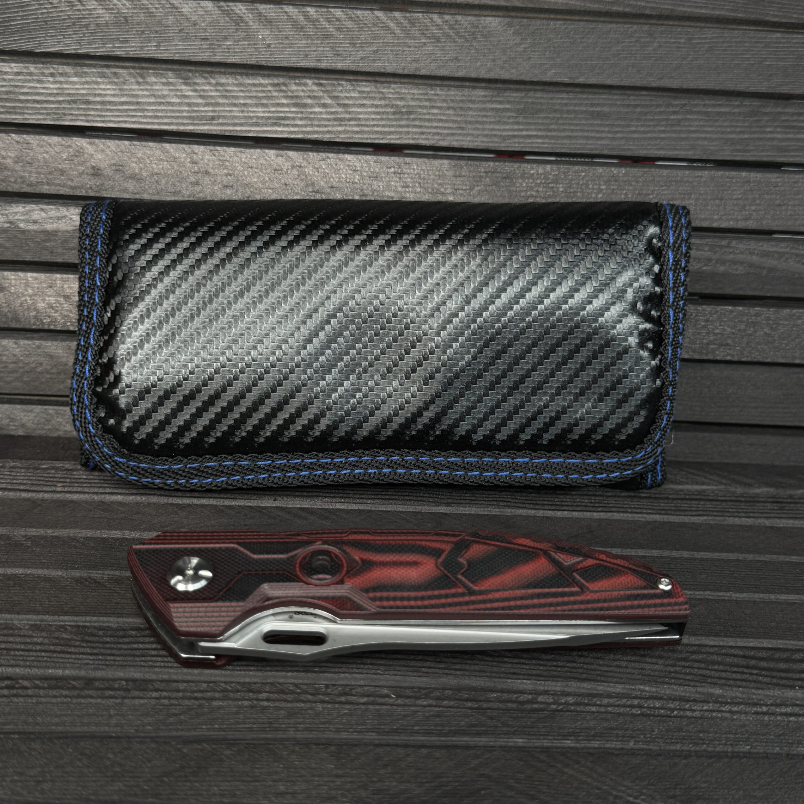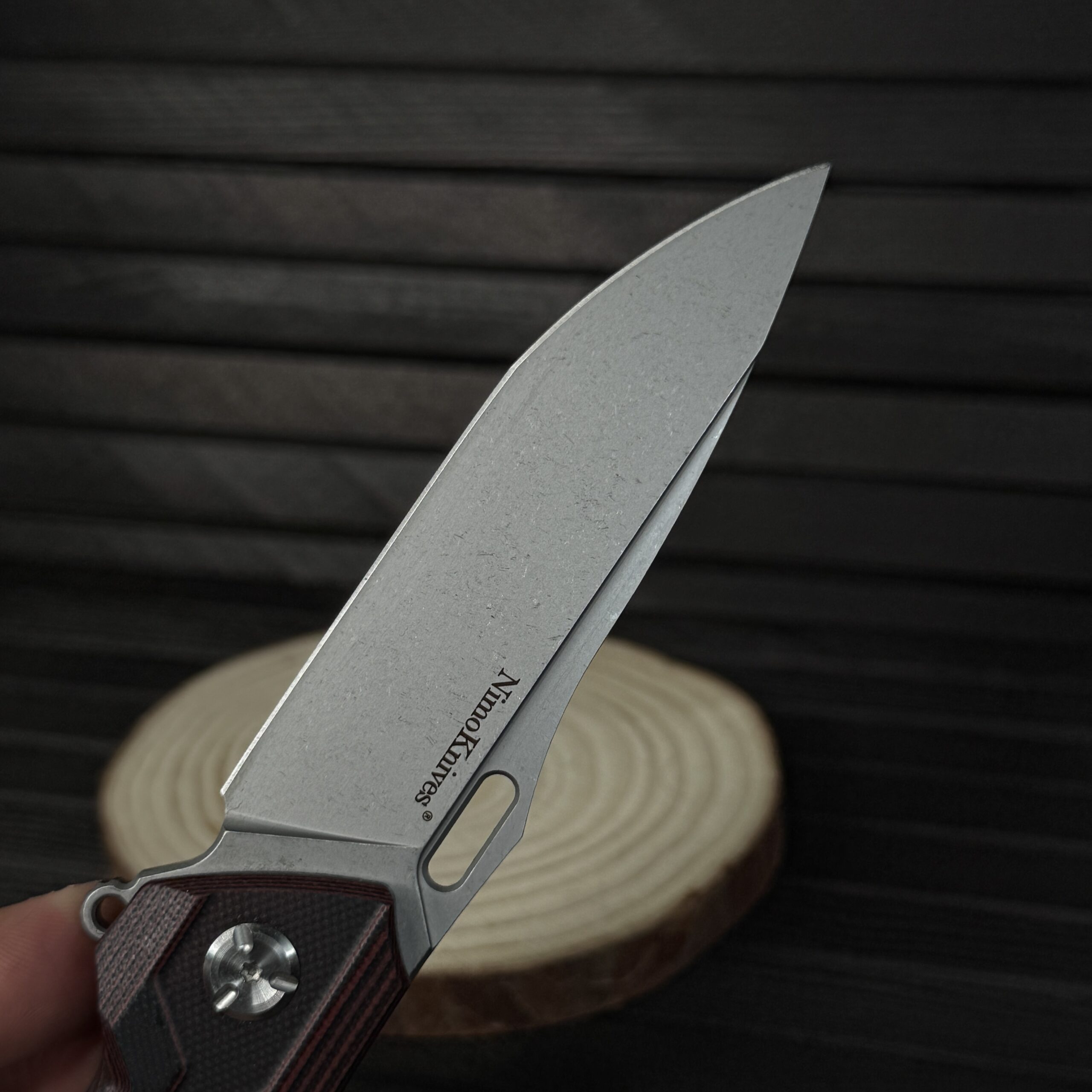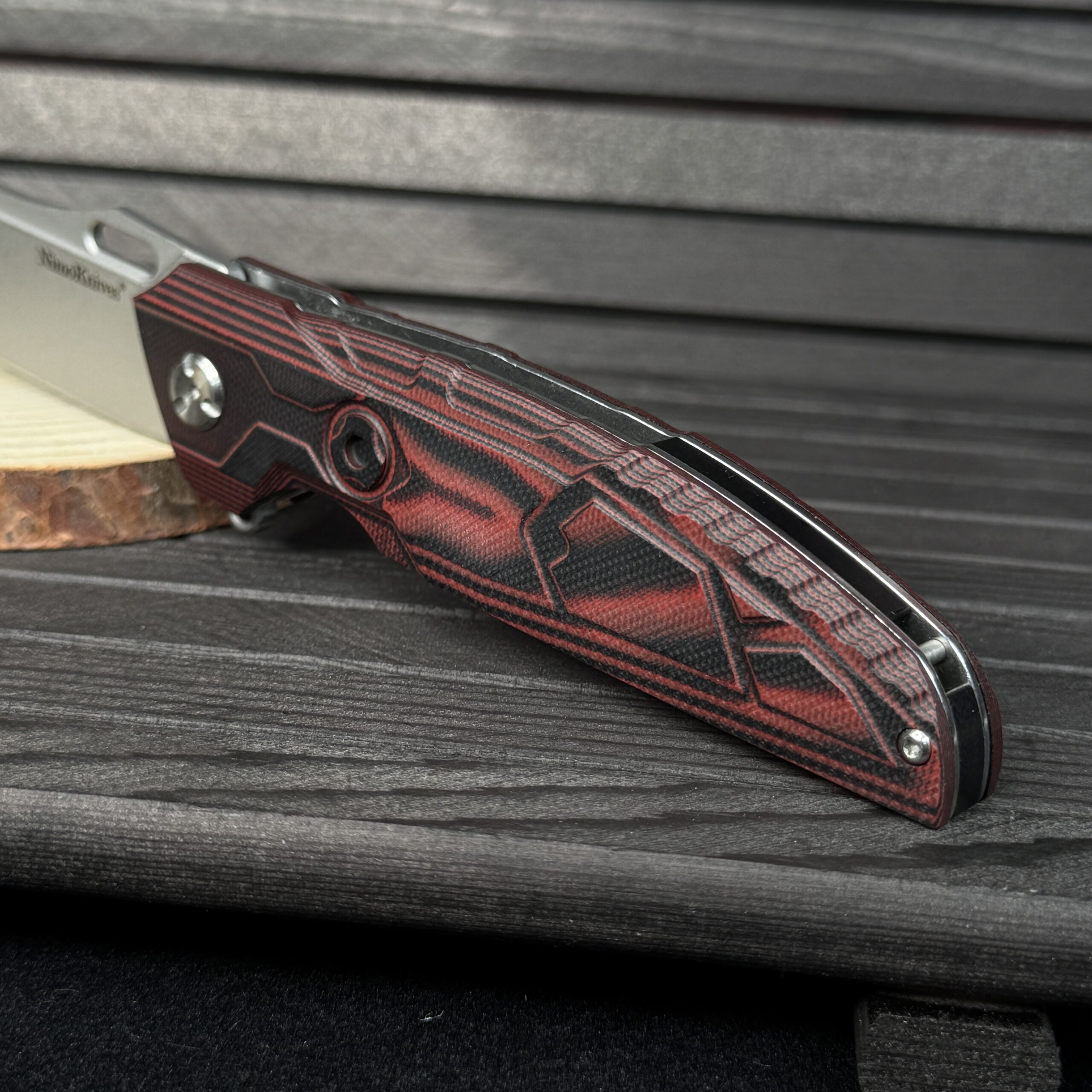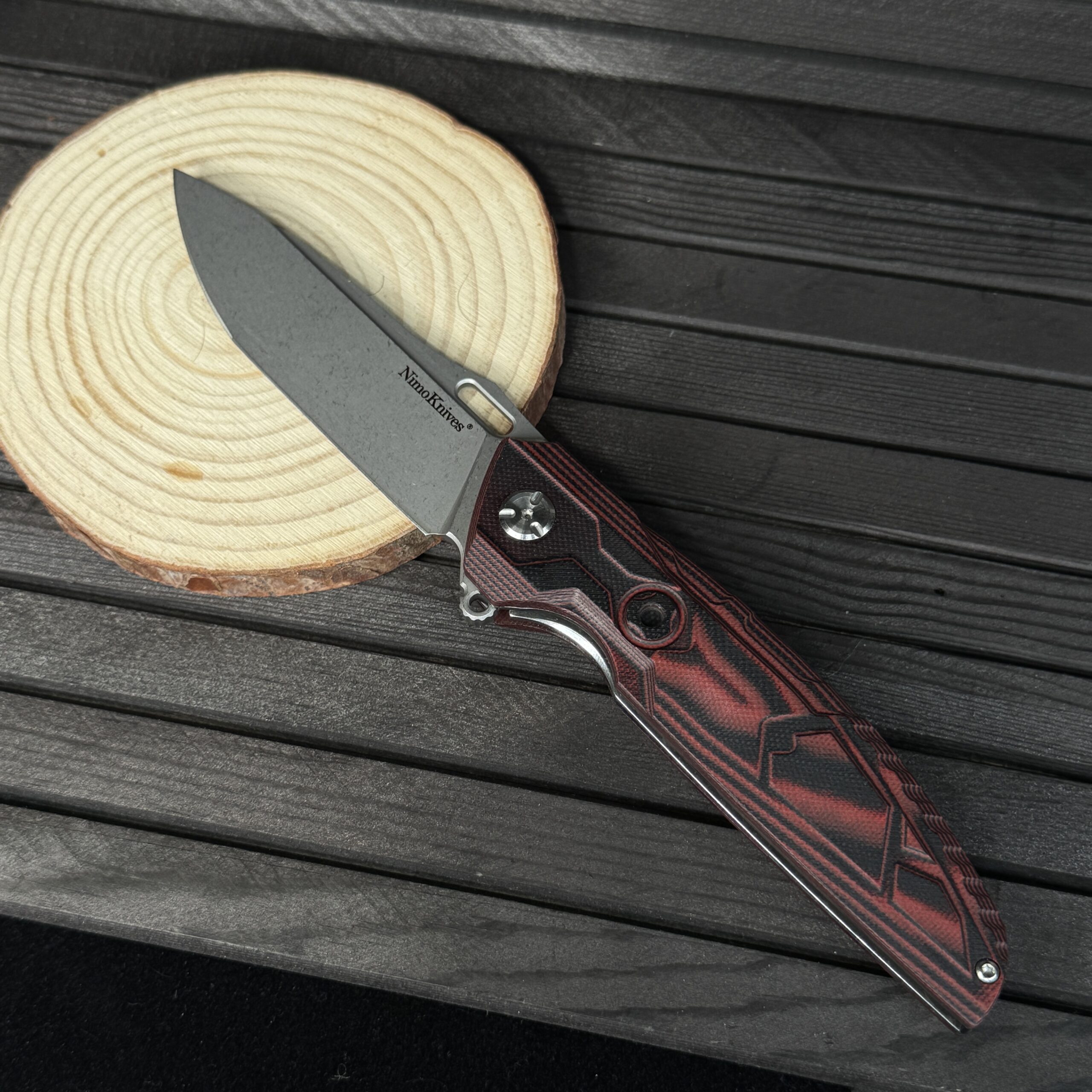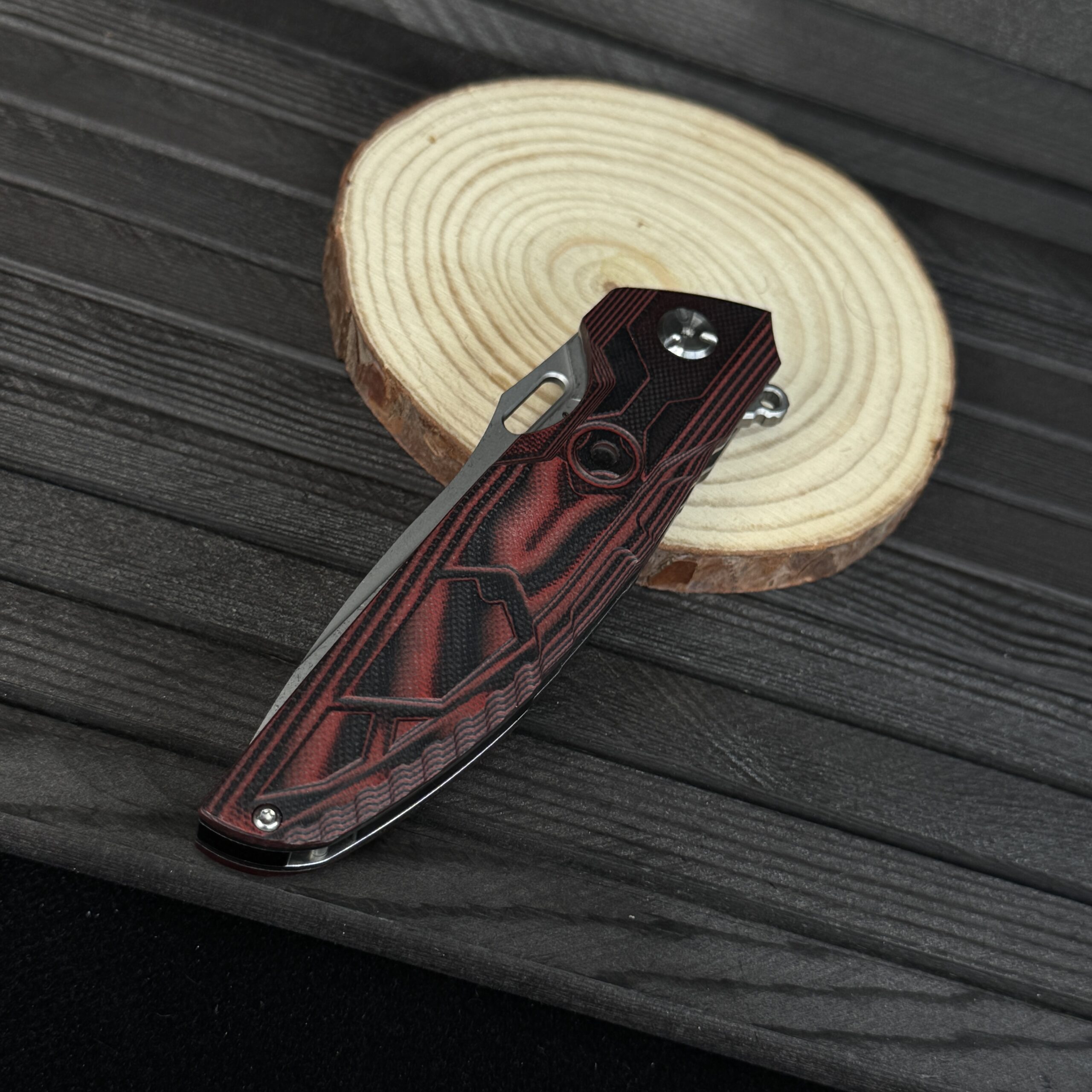 المقبض :- من ستانلس ستيل مغطى بطبقات من G10 ليعطي مسكة مريحة جدا مع Clip خصر