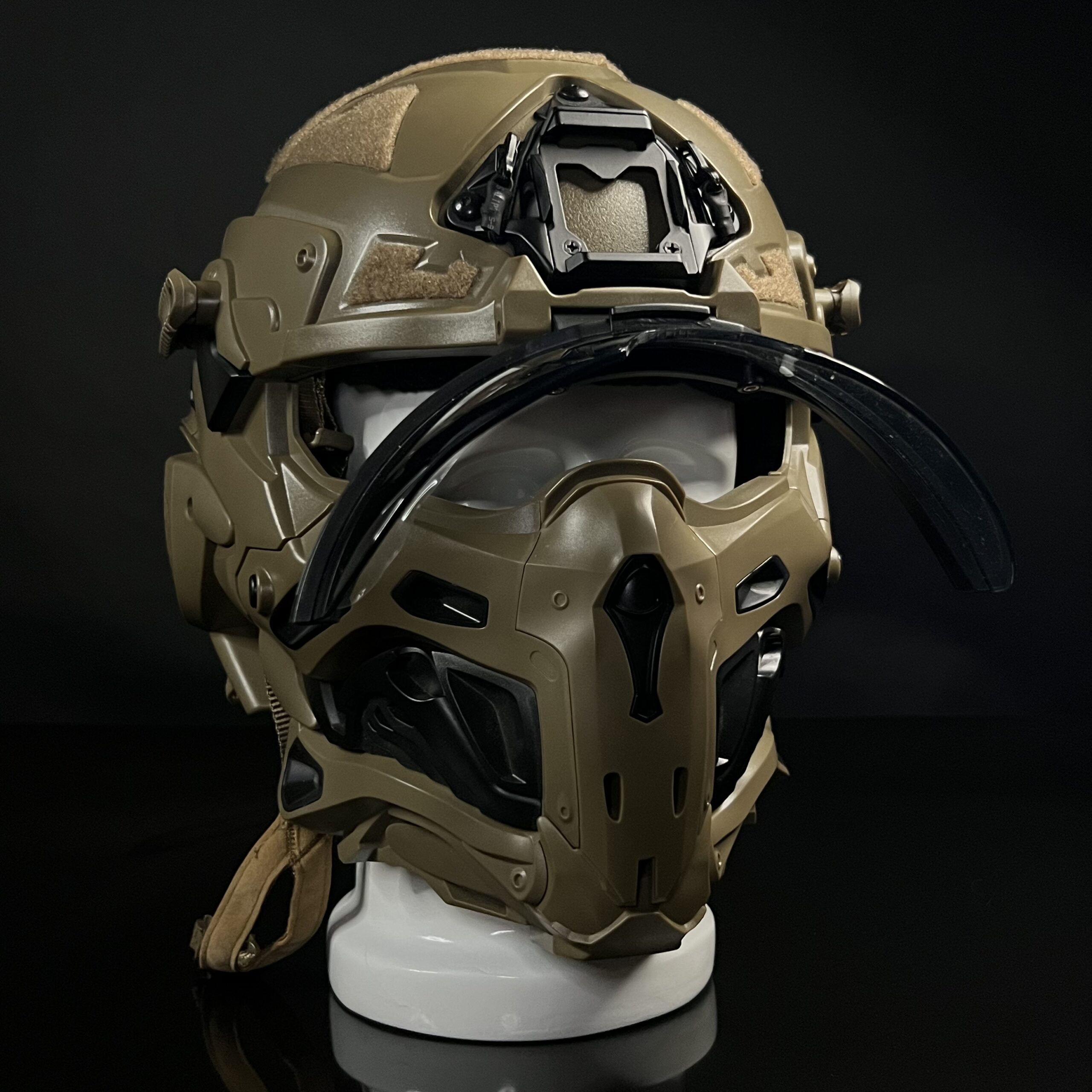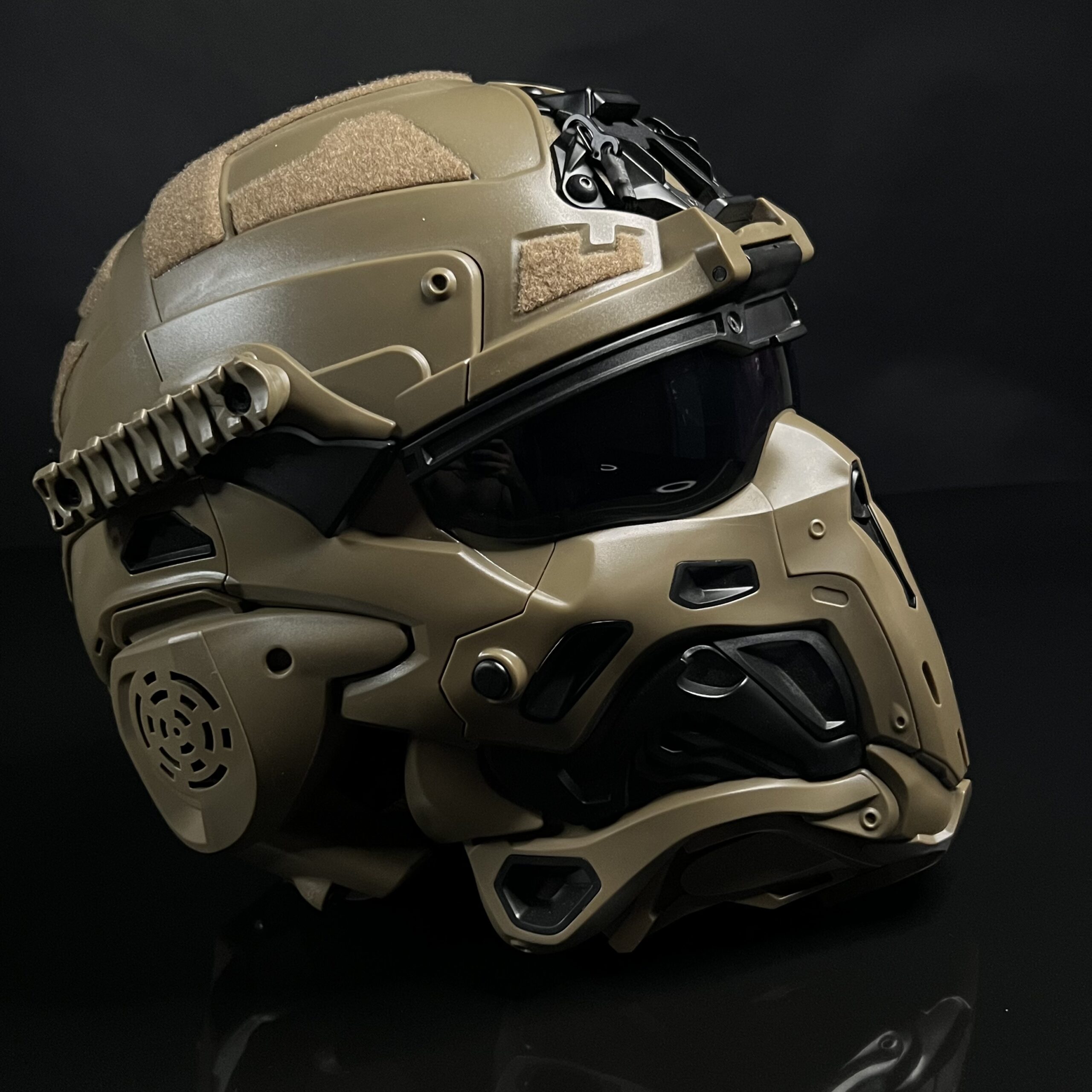 خوذة عسكرية بالكامل بكل معنى الكلمة مصنوعة من اجود انواع البلاستك الحراري TPU المقاوم للصدمات مع اضافات كثيرة لل attachments العسكرية مال خوذة