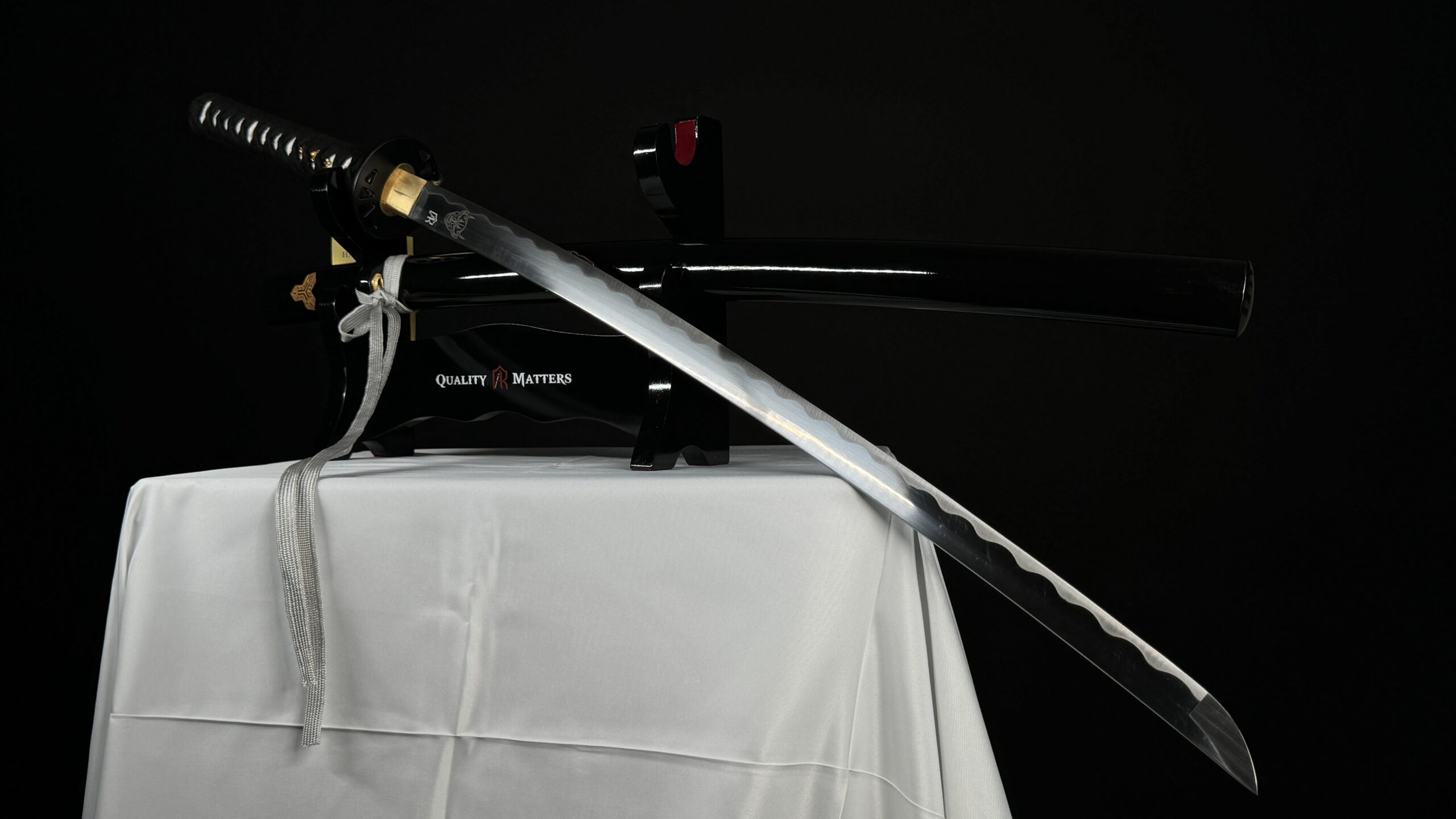 النصل من ال 1045 النقي اي “0.45%” كاربون لذرات الستيل و ال1045 يعتبر اقل مواصفات ممكنة لكاتانا حقيقي و اذا حتسألون تكولون يعني موزين؟ ف لا ال 1045 جدا راقي و قوي لان بغض النظر عن المعدن الي يفرقنة عن غيرنة هو العلاج الثانوي الصحيح بالحرارة منما يعطي صلابة اكثر من ال 1045 العادي الغير معالج (العلاج الصحيح على يد الماستر الصحيح)